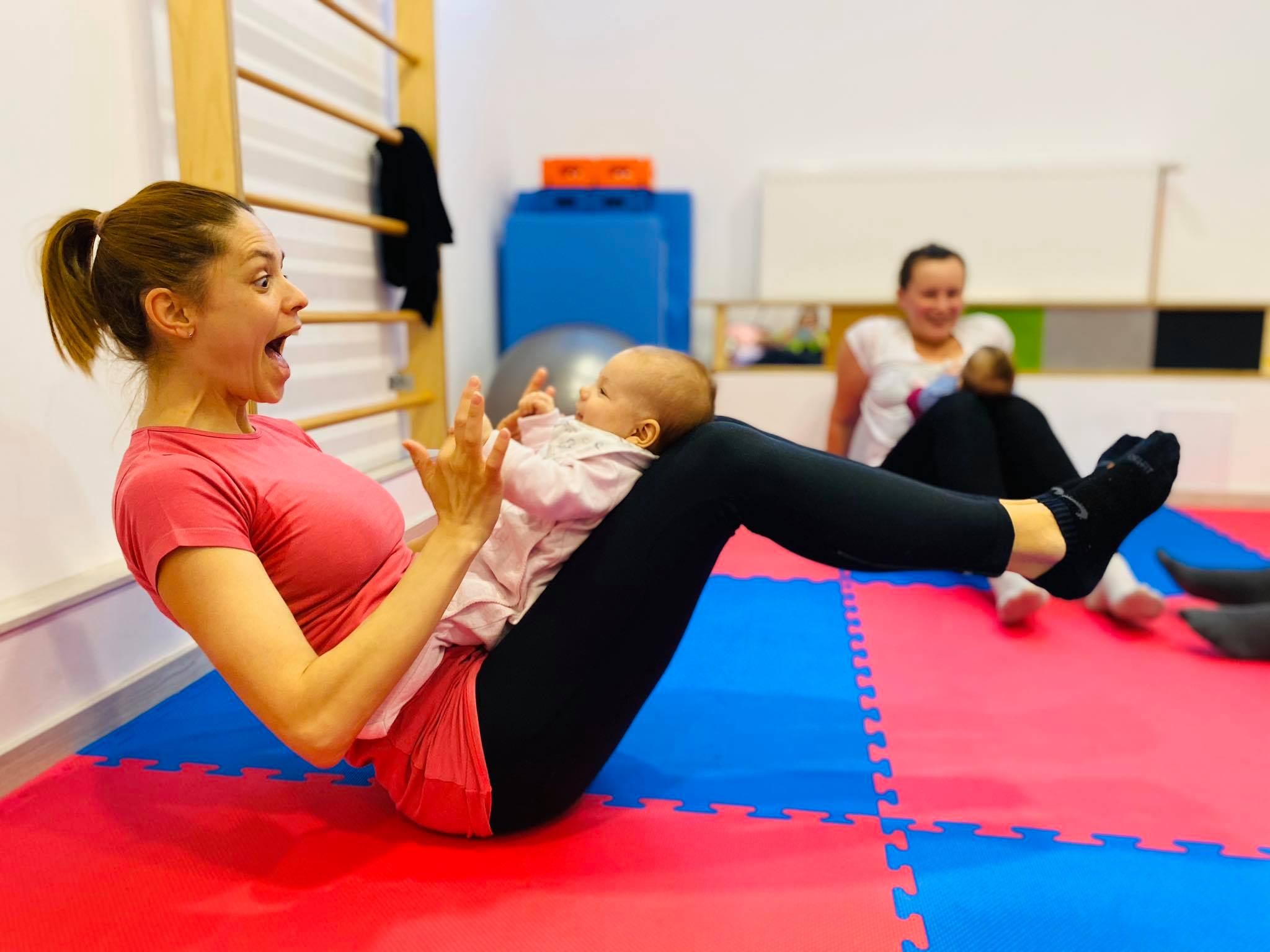 kroz mnogobrojne rotacije i akrobatske aktivnosti tijekom vježbi, jačanje veze na relaciji mama – beba