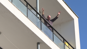 Pljesak je čuo i pacijent s najvišeg kata, koji se već gotovo oporavio pa je uspio mašući rukama pozdraviti sve prisutne s balkona.