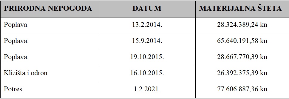 Šteta nastala prirodnim nepogodama u posljednjih 10 godina u Karlovcu premašuje 226 milijardi kuna. Najgore posljedice bile su za poplave 2014. U dva navrata, u veljači i rujnu, poplave su prouzročile štetu od gotovo 94 milijuna kuna. Poplava i odroni godinu kasnije, 2015., proračun su umanjile za 55 milijuna kuna. Račun za prošlogodišnji potres je 77,60 milijuna kuna.