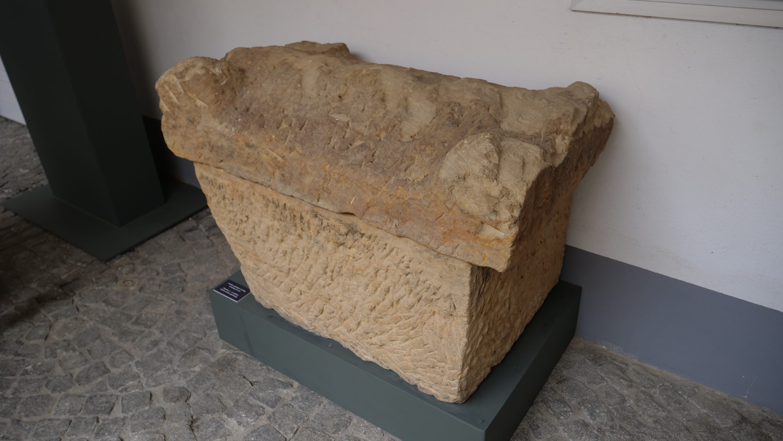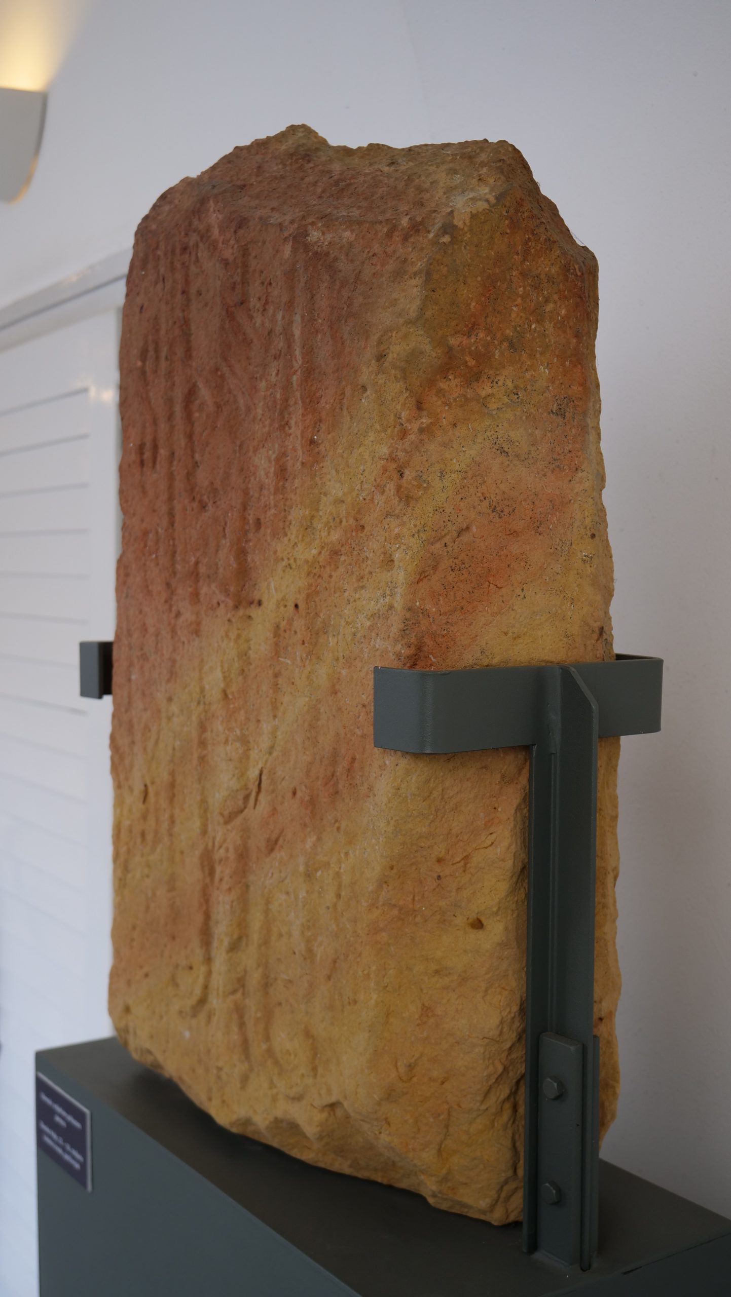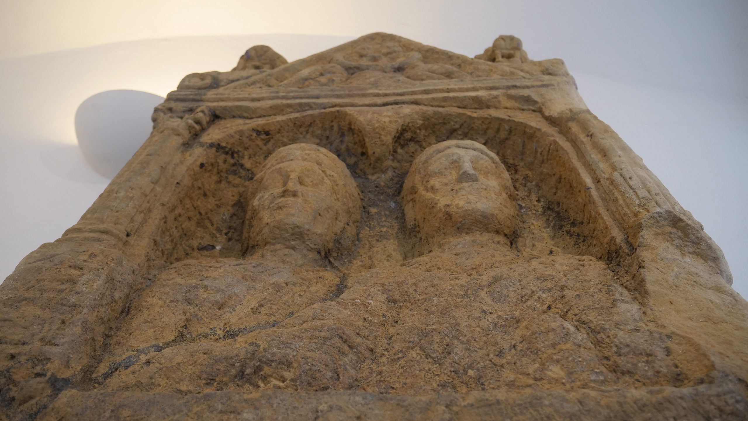– radi se o velikoj steli koja je dopremljena iz Topuskog. Predstavlja spomenik nepoznatog bračnog para. Mi sa ovakvih spomenika često u arheologiji saznajemo njihova imena pa čak i godine koje su imali u trenutku smrti, kod ove to nažalost nije slučaj jer je donji dio utučen pa smo ostali zakinuti za taj dio natpisnog polja. Stelu tako možemo datirati u široki raspon od 1.- 4. stoljeća kako i stoji u arheološkoj dokumentaciji, no ja bih slobodno mogla reći da je to početak 2. stoljeća pa do 4. stoljeća jer se na području središnje Hrvatske ovakve monumentalne velike stele rijetko pojavljuju prije početka 2. stoljeća, no naravno, može biti i izuzetak, ispričala je autorica izložbe i kustosica arheološkog odjela Matea Galetić.