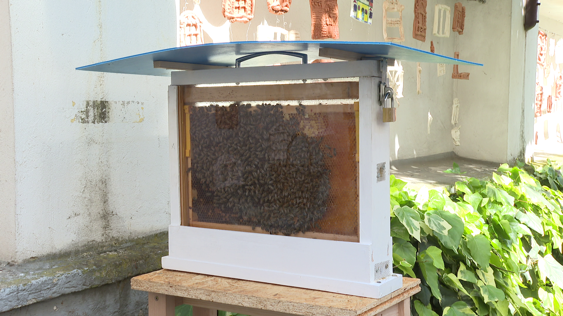 – Također, imamo u Medonosnom vrtu sada postavljen apisarij, koji će tu biti do utorka. To je jedna staklena košnica gdje žive medonosne pčele, a imamo i postavljenu kućicu za solitarne pčele.