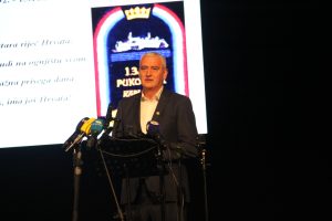 Jučer su imali promociju monografije, a večeras su na svečanoj akademiji pripadnici 13. domobranske pukovnije dostojno obilježili 30. obljetnicu osnivanja. Na početku ceremonije, obratio se gospodin Krunoslav Perković, predstavnik organizacijskog odbora i tijekom djelovanja Pukovnije pomoćnika zapovjednika za političku djelatnost. Pjesmu „Gledam bajnu zoru“ otpjevala je ženska klapa KUD-a Mostanje koju vodi Mateja Blažević nakon čega se obratio gradonačelnik Damir Mandić.