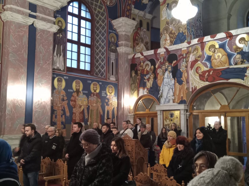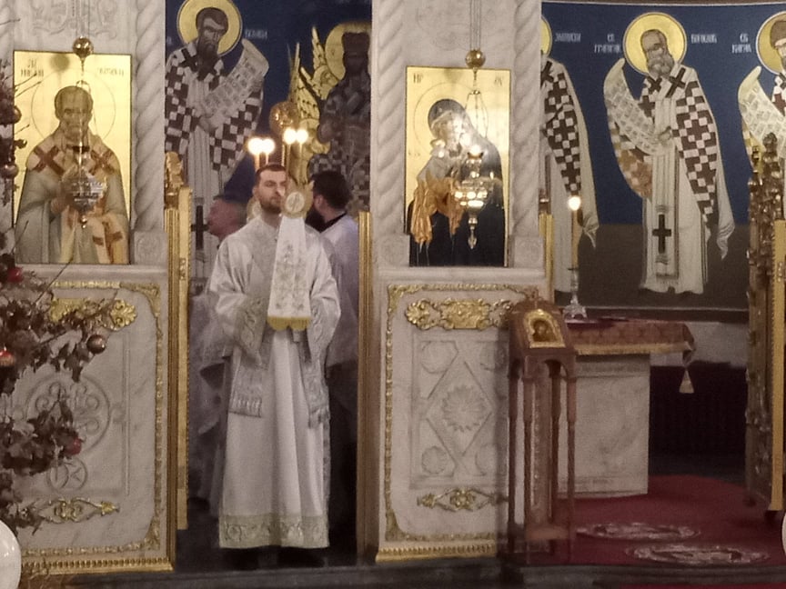 Vjernici pravoslavne vjeroispovijesti danas slave Božić. U ispunjenoj pravoslavnoj Crkvi svetog Nikole održala se svečana arhijerejska liturgija na kojoj su se pravoslavni svećenici tijekom liturgije osvrnuli na važnost Kristova rođenja. Već u rano jutro dolazak Krista ili Hristosa najavljuju zvona crkve, a nakon svete mise vjernici se okupljaju oko obiteljskog stola. Pravoslavni vjernici prema starim običajima u ranim jutarnjim satima na Badnjak odlaze po badnjak-hrastova grana, koja se postavlja pred ulaz u dom, a  u ranim jutarnjim satima na sam Božić održava se jutarnja molitva koja se zove “jutrenje”.