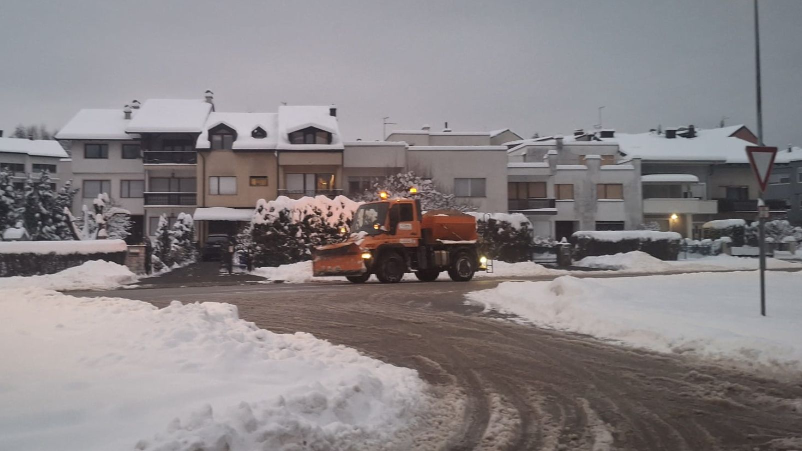 U tijeku je čišćenje i posipavanje kolnika, a na pojedinim dionicama cesta vozi se usporeno zbog vozila zimske službe koja se kreću sporije. Što se tiče karlovačke županiji na cesti DC228 Jurovski Brod-Netretić ograničena je brzina za ostala vozila zbog poledice.