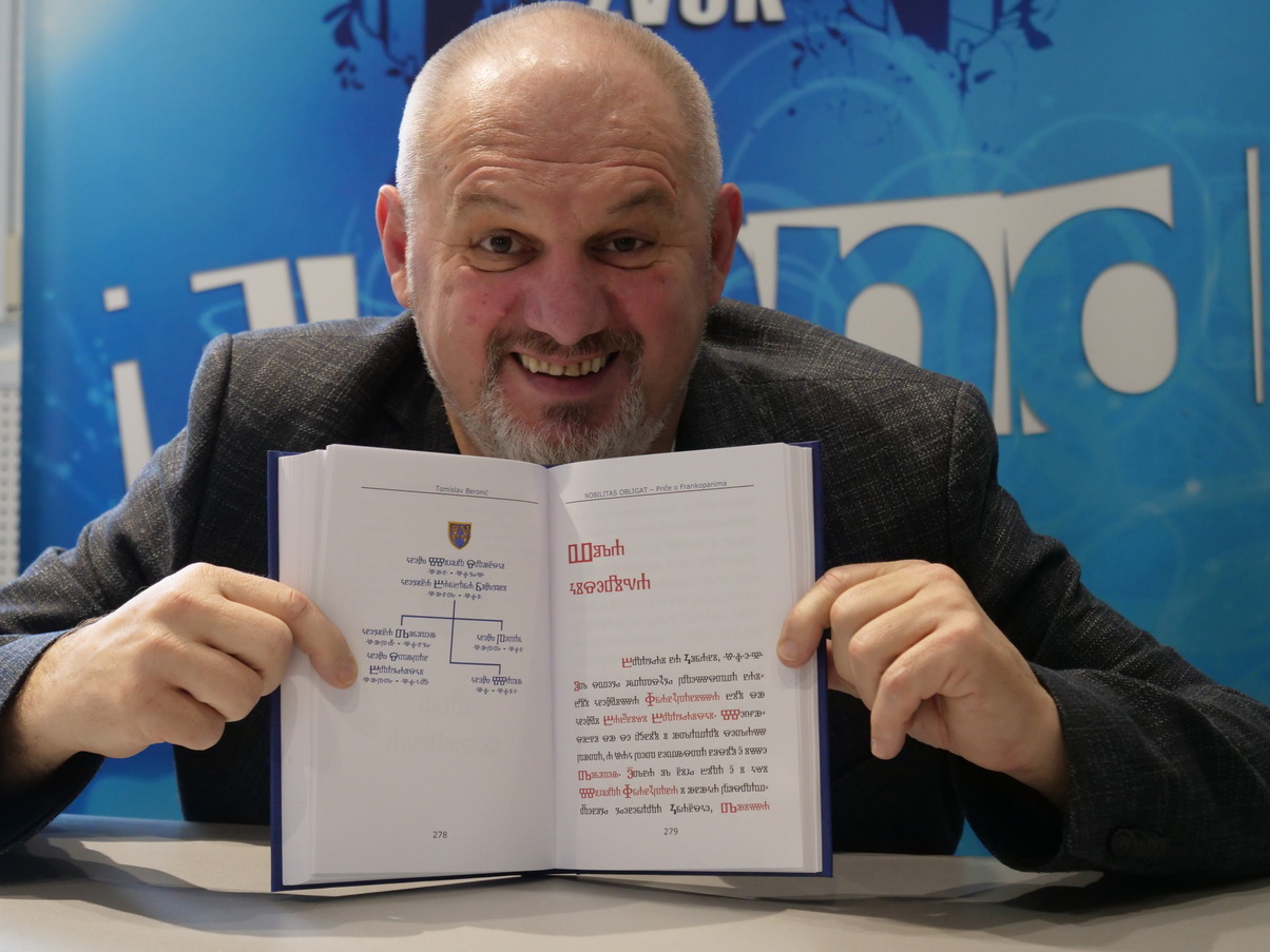 –Tako je sada sve zaokruženo, a u ovoj trećoj knjizi postoji mali dodatak. Na samom početku nalazi se učilica Blegodjice. U ovoj knjizi sam s tim eksperimentirao jer su Blegodjice i Frankopani nerazdvojni. U prvoj priči učilica Blegodjice prikazuje se tako da se u svakom ulomku mijenja po jedno slovo, iz latinice u Blegodjicu, sve dok se ne dođe do kraja prvog poglavlja priče, do Veđe Blegodjaške svetijere. Na kraju treće knjige, Nobilitas obligat, nalaze se portreti Frankopana. To je bio razlog zbog kojeg sam knjigu tiskao u boji — što nije uobičajeno za romane — ali meni to nije prvi put, pa sam prikazao likove svih 18 osoba. Također, radi se o nusproduktu mojih ranijih dogovora. Prije dvije godine dogovorio sam s Anom Krznarić, ravnateljicom Zavičajnog muzeja u Ogulinu, da se u kapelici Svetog Bernardina, lijevo od ulaza u kaštel, postavi stalni postav vezan za Frankopane. Do tada je kapelica bila prazna, osim nadgrobne ploče kneza Stjepana u sredini, rekao je Beronić.