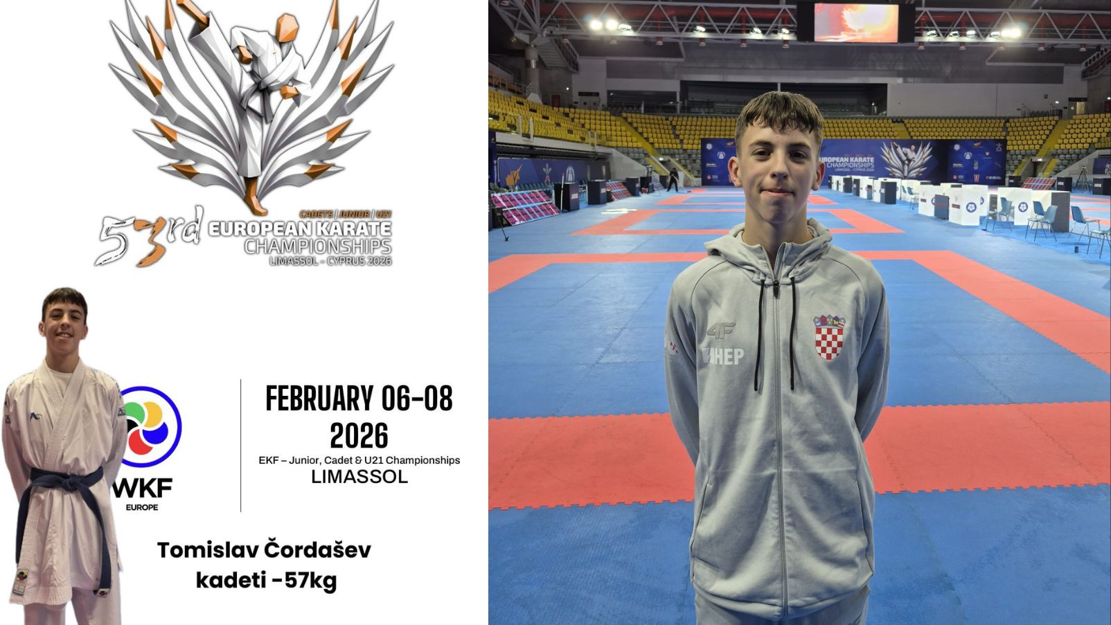 Član Karate klub Karlovac 1969 i hrvatski reprezentativac Tomislav Čordašev nastupio je na Europskom prvenstvu u karateu za kadete, juniore i mlađe seniore, koje je okupilo oko 1200 natjecatelja iz 46 država. Prvenstvo je održano od 6. do 8. veljače 2026. u Limasol na Cipar.