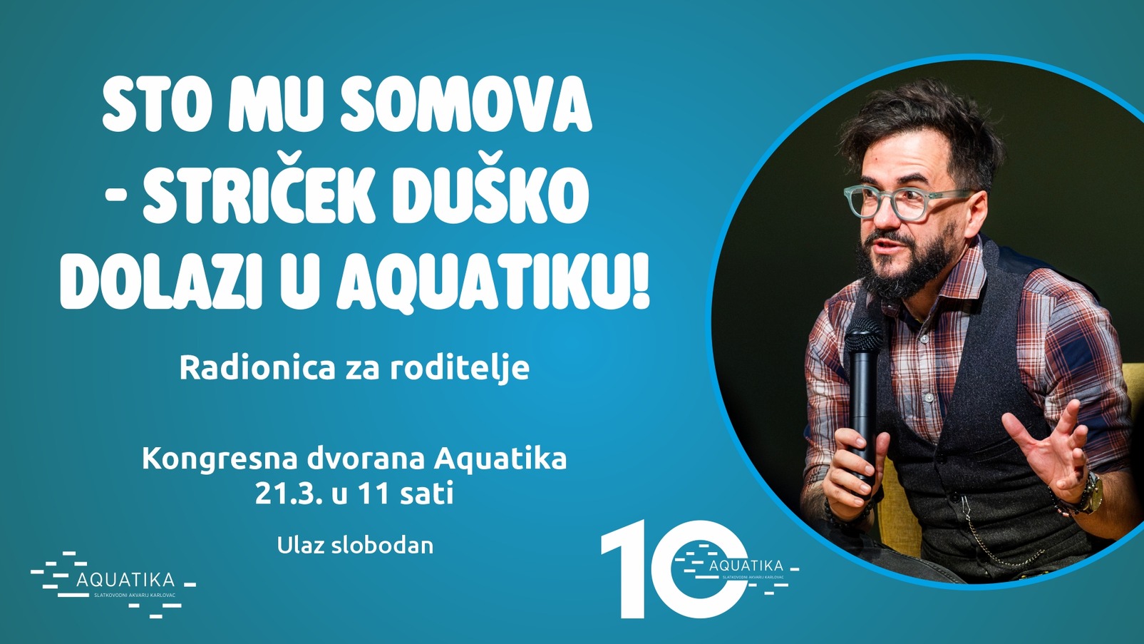 Aquatika – Slatkovodni akvarij Karlovac ovog će vikenda obilježiti Svjetski dan voda posebnim susretom koji spaja prirodu, doživljaj i znanje – vrijednosti koje ova ustanova njeguje već deset godina. U sklopu proslave 10. rođendana, u subotu, 21. ožujka u 11 sati, u Aquatiku gostuje dugogodišnji odgojitelj i mnogima omiljeni Striček Duško.