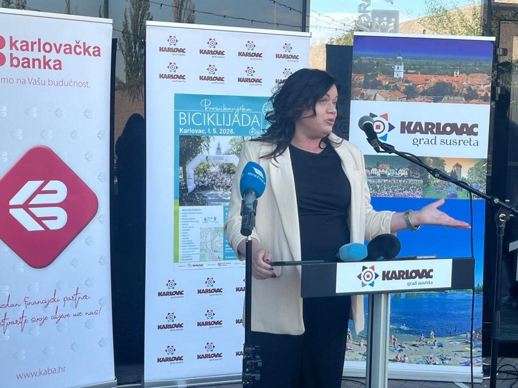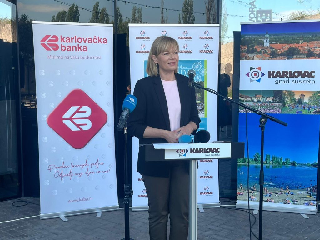 Ispred glavnog sponzora biciklijade, obratila se direktorica sektora za marketing i razvoj općih poslova Karlovačke banke, Kristina Hata.